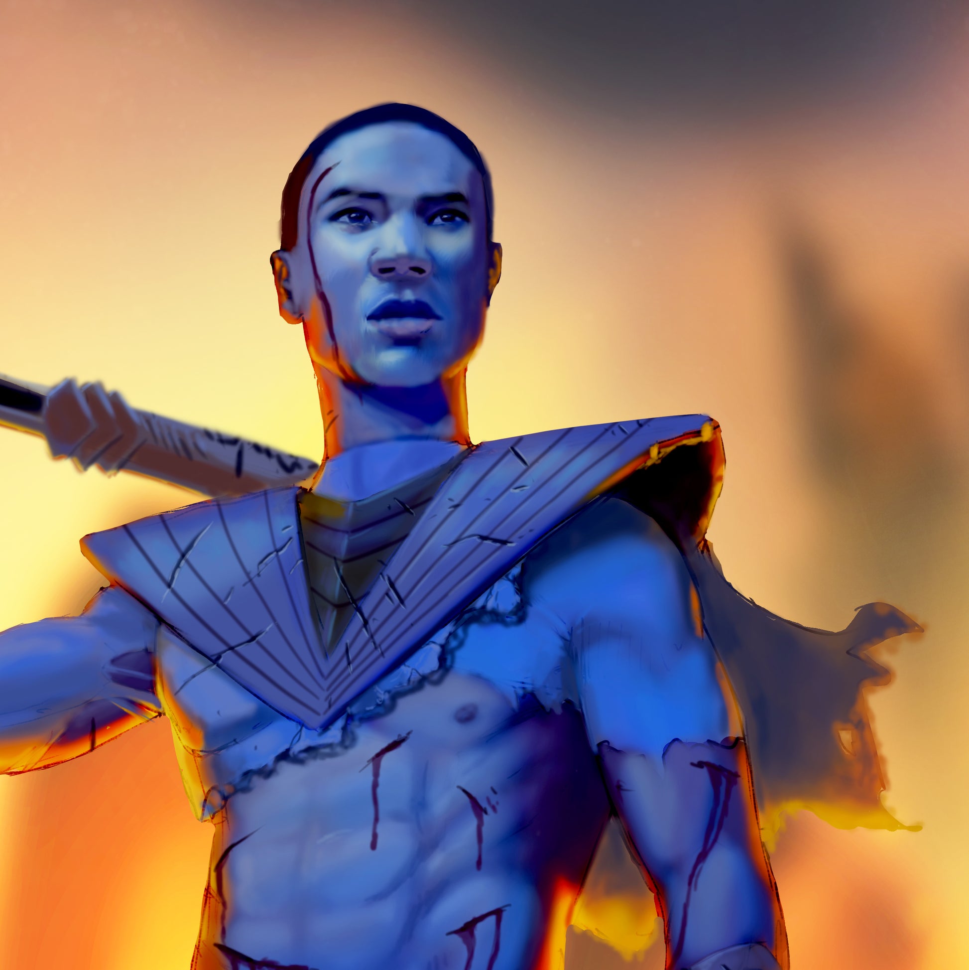 🔥 Zayto, the Zenith Ranger, stands proudly with his Master Staff, his suit torn to reveal his well-defined abs. The fire from his destroyed Zord rages behind him, illuminating his powerful presence. Zayto’s unwavering confidence and mastery of his craft are undeniable. He is the pinnacle of strength, a warrior whose power is only amplified by the destruction around him. Though battered and scarred, he remains a symbol of the highest order of Rangers.