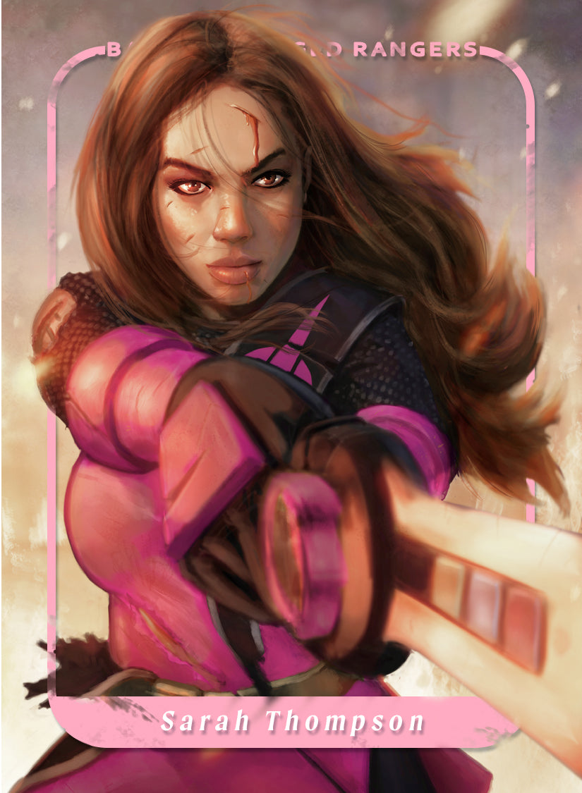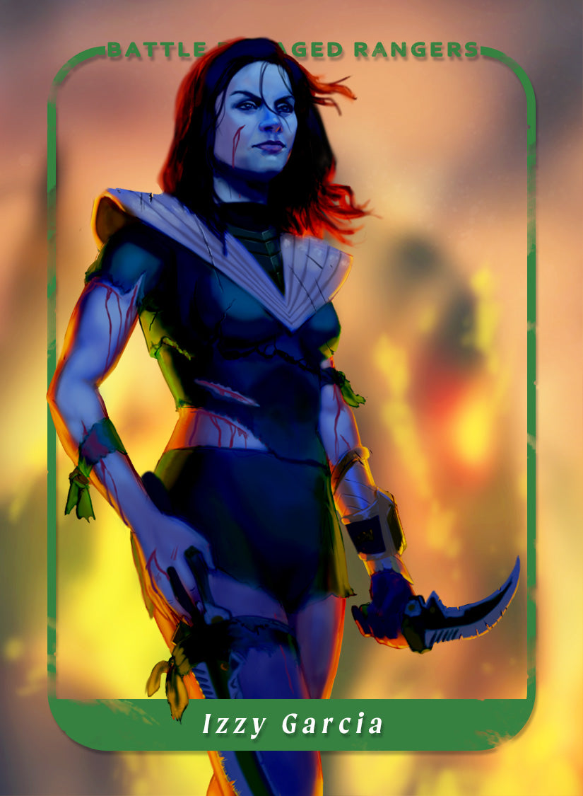 Dive into a world where battle-worn heroes rise victorious! This set of art trading cards captures your favorite Power Rangers in their most intense, triumphant moments—each a warrior who has pushed their limits and come out on top. With broken helmets, torn suits, and weapons held in hard won triumph, these Rangers are ready for anything, even after the fight that nearly broke them. Ready to honor these battle-hardened heroes?