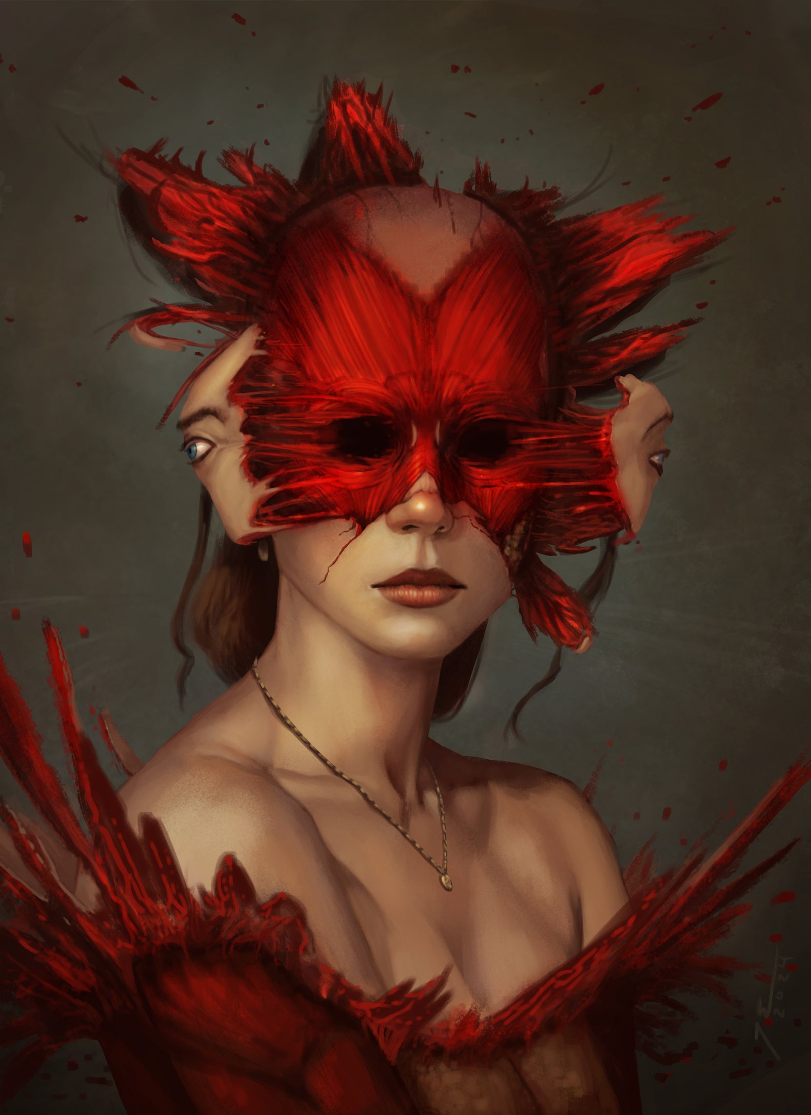 - Design: The woman’s bust is captured with an unsettling calmness, her skin flaying away from her face, body, and feet. The portrait is a stark contrast between serenity and the grotesque, leaving you with an eerie sense of stillness.
