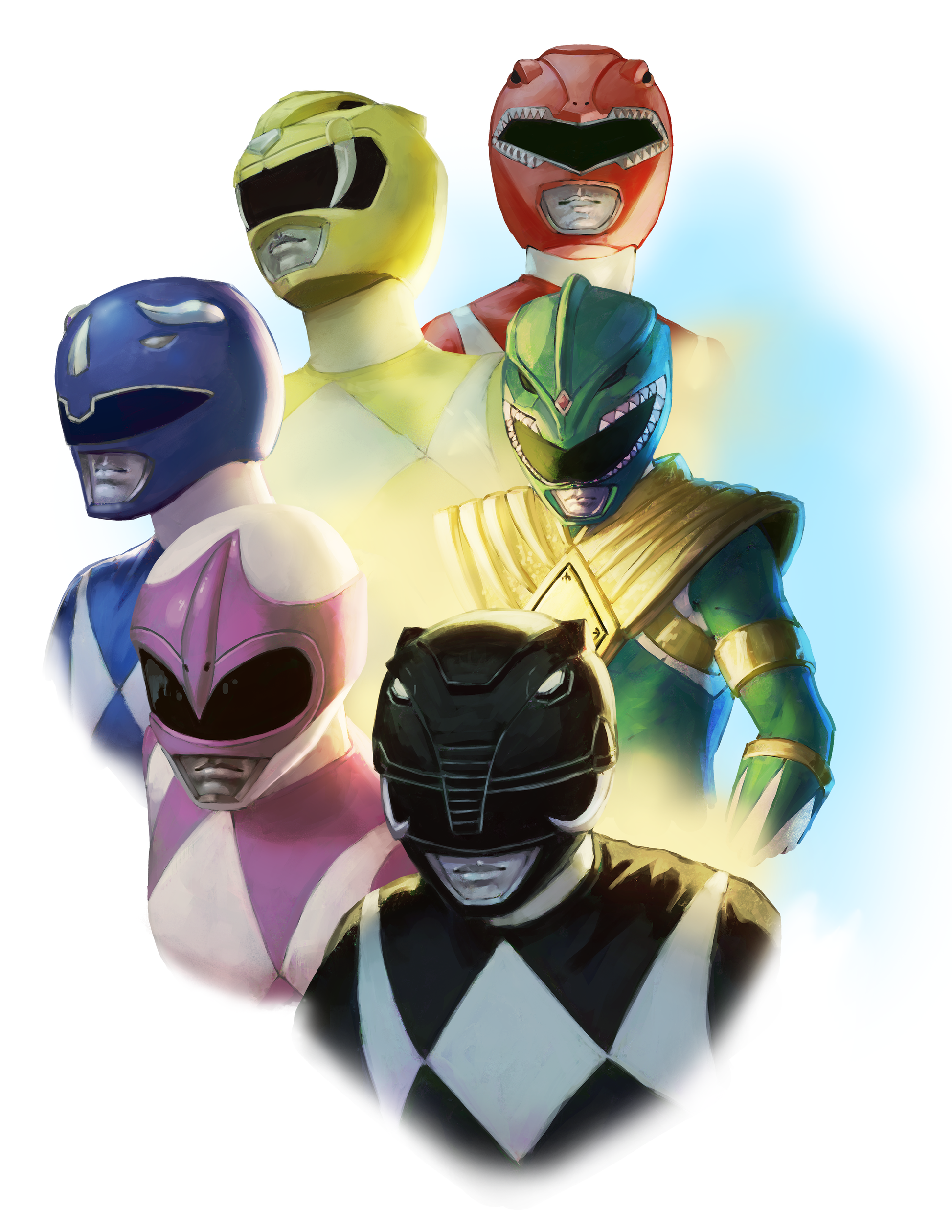 - Design: Jason, Zack, Billy, Kimberly, Trini, and Tommy standing confidently in their suits, each representing their unique powers and strengths. The clean white background lets their Ranger forms shine, while providing space for signatures.