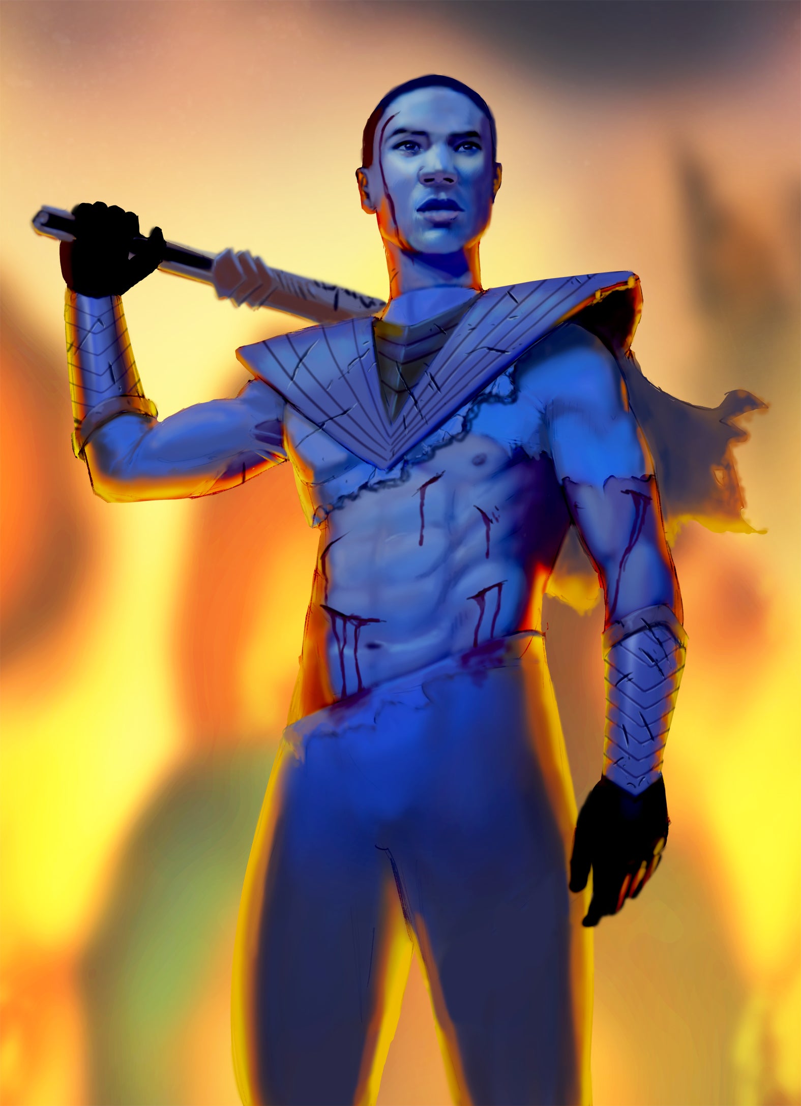 🔥 Zayto, the Zenith Ranger, stands proudly with his Master Staff, his suit torn to reveal his well-defined abs. The fire from his destroyed Zord rages behind him, illuminating his powerful presence. Zayto’s unwavering confidence and mastery of his craft are undeniable. He is the pinnacle of strength, a warrior whose power is only amplified by the destruction around him. Though battered and scarred, he remains a symbol of the highest order of Rangers.